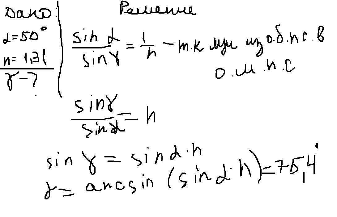 луч света падает на границу раздела двух сред лёд-вода.Угол падения равен 50 градусов.Найдите угол преломления.Абсолютный показатель преломления льда равен 1,310!ОЧень срочно!помогите,пожалуйста!