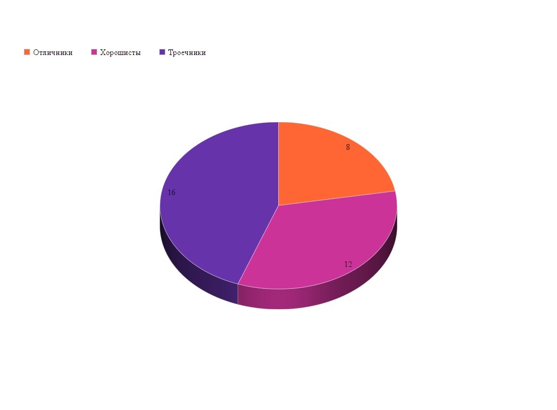 В классе 36 учеников .По математике за четверть отметку "5" имеют 8 человек,отметку "4"-12 человек,а остальные - отметку "3".Постройте круговую диаграмму.