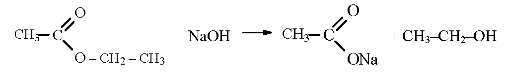 При гидролизе сложного эфира в присутствии щелочей образуются соль карбоновой кислоты и спирт: 2 картинка.