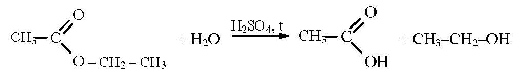 Химические свойства. Наиболее характерная реакция для сложных эфиров - гидролиз. Гидролиз происходит в присутствии кислот или щелочей. При гидролизе сложного эфира в присутствии кислот образуется карбоновая кислота и спирт: 1 картинка.
