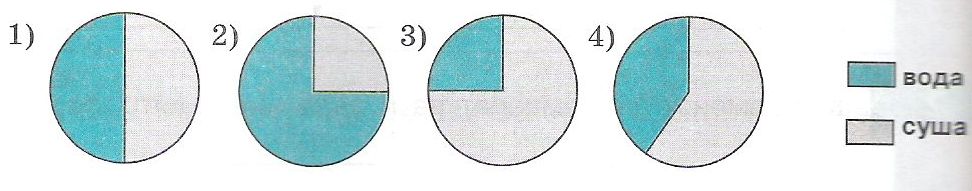 На какой диаграмме правильно показано соотношение поверхности Земли покрытой водой и занятой сушей?