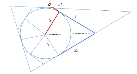 Проведем ко всем точкам касания радиусы. Как известно, они будут перпендикулярами к касательным.