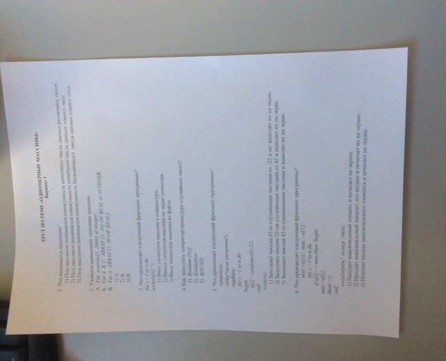 6 - находит максимальный элемент и его номер. Если бы в программе было напечатано writeln(max, 'номер',imax) то можно было сказать что и выводит на экран