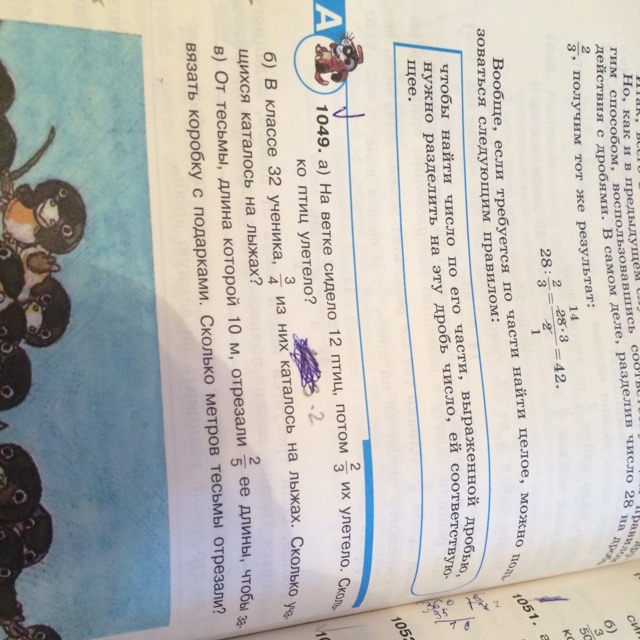 1) 12 * 2/3 = 24/3 = 8 птиц улетело