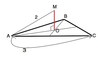 МО=√(AM²-AO²)=√(4-3)=1 - это ответ.
