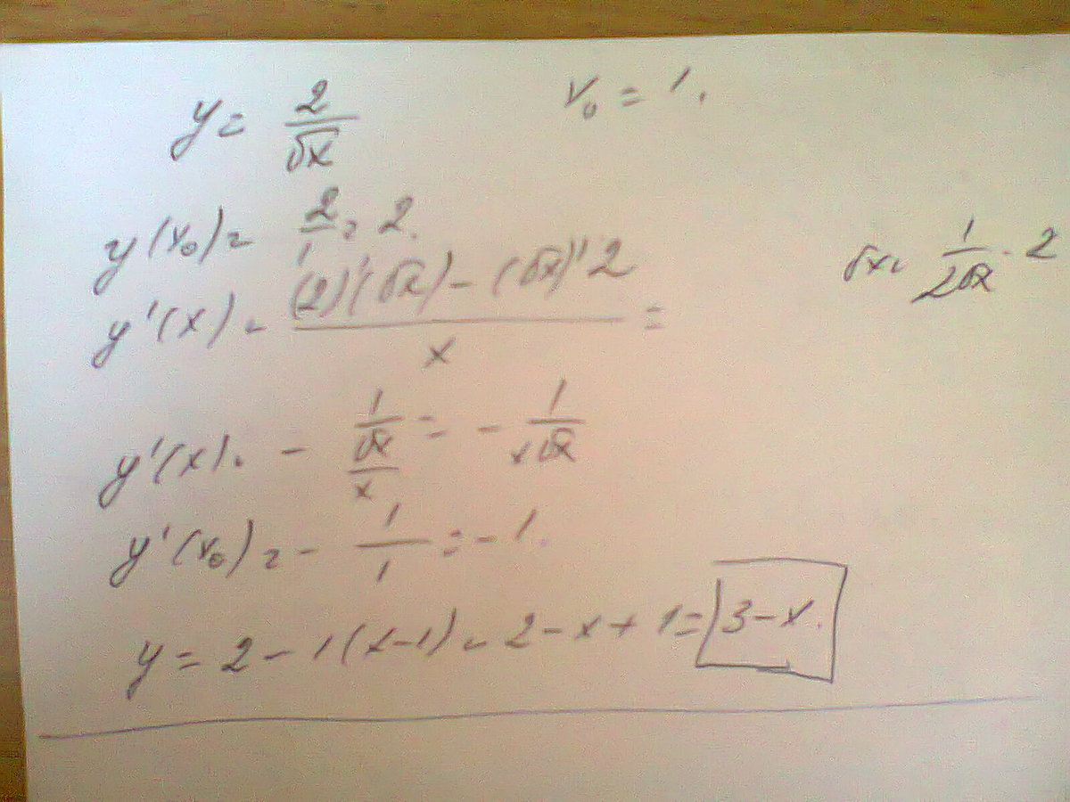 y=y(1)+y`(1)(x-1)=2+(-1)(x-1)=2-x+1=-x+3