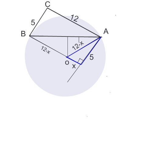 В прямоугольном треугольнике АВС катет АС=12,ВС=5.Найдите радиус Окр(О,г), которая проходит через концы гипотенузы треугольника и касается ВС.