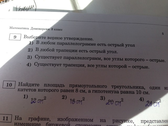 В любой трапеции есть хотя бы один острый угол- ответ 2)