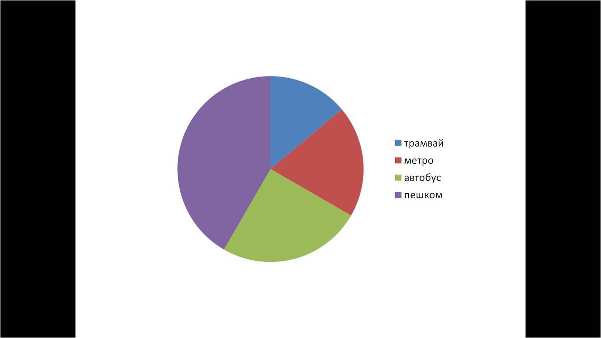 в классе 36человек из них 5 человек едут на до школы на трамвае,7 на метро,9 на автобусе,а остальные идут пешком.составь по этим данным круговую диаграмму