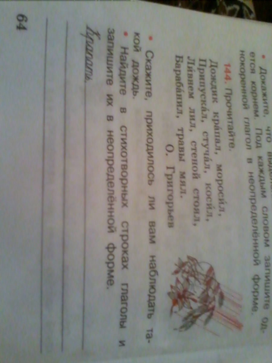 Дождик карапалал моросил припускал стучал косил ливнем лил стеной стоял барабанил травы мял найти в стихотворных строках глаголы в неопределённой форме