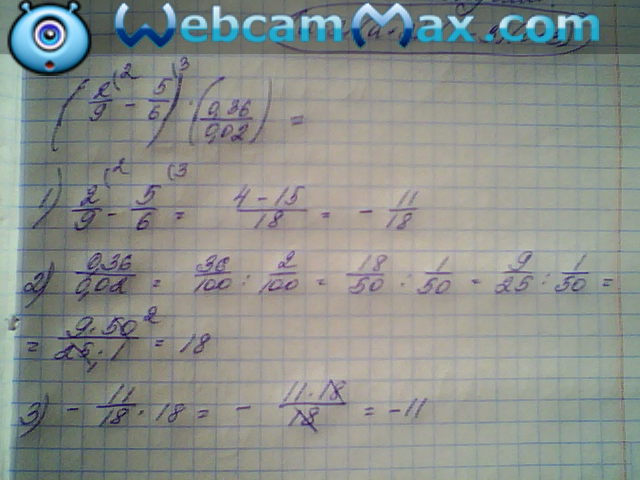 в скобках две девятых минус пять шестых умножить на в скобках ноль целых тридцать шесть сотых делить на ноль целых две сотых