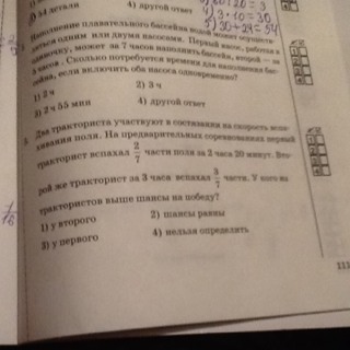 2/7:2 1/3=2/7*3/7=6/49 часть - вспахал первый за 1 1 час