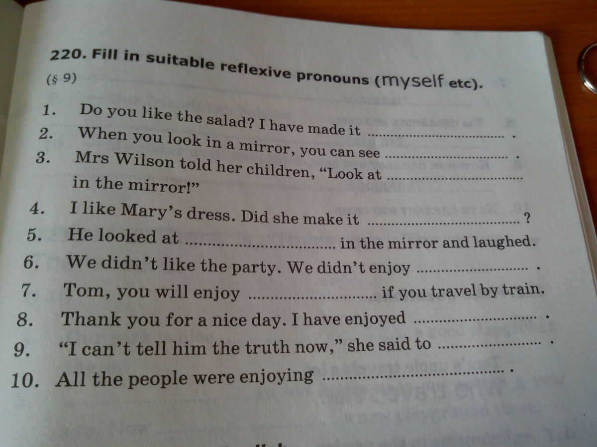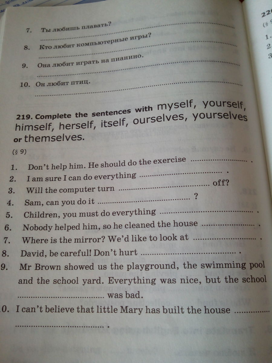 itself, yourself, yourselves, himself, ourselves, yourself, itself, herself. Это 219 упр.
