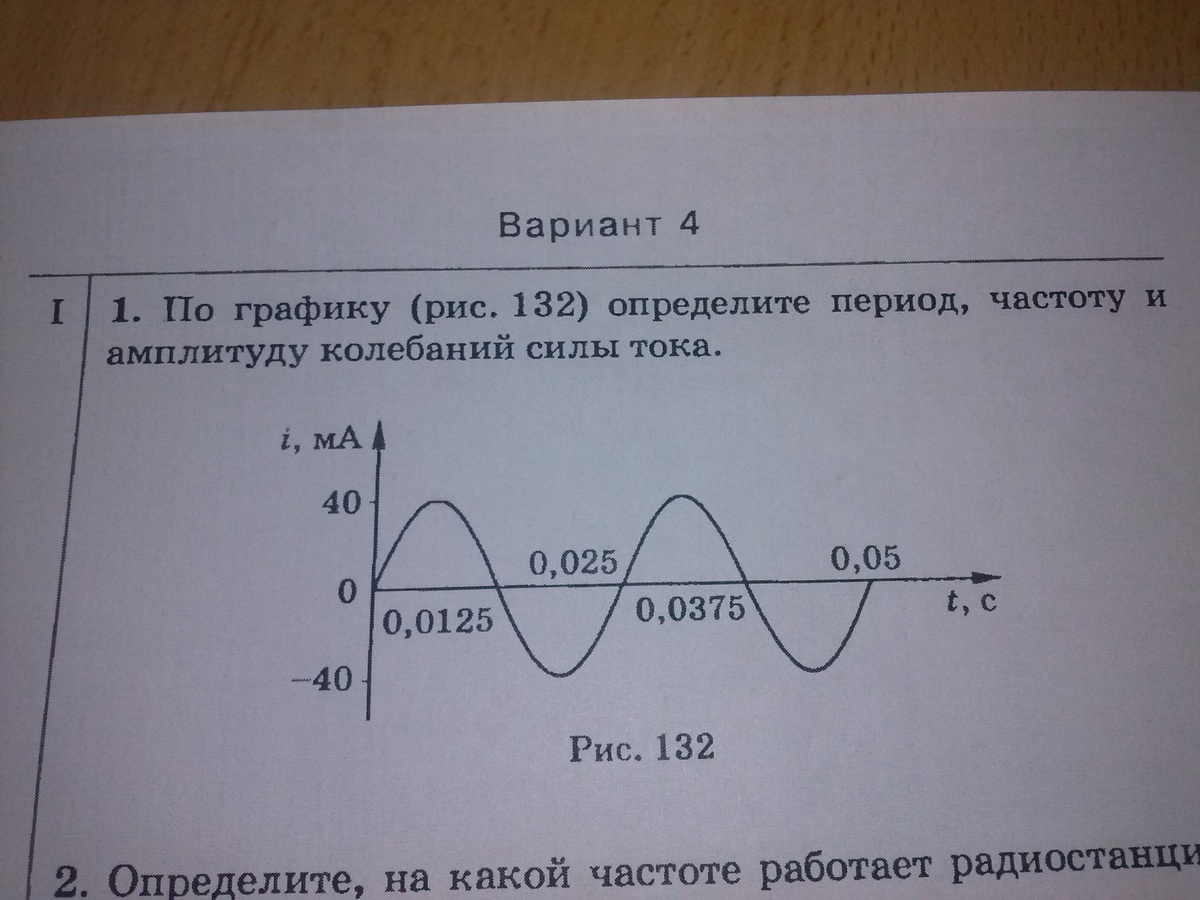 Амплитуда Imax=40 мА T=0,025 c v=1/T=1/0,025=40 Гц