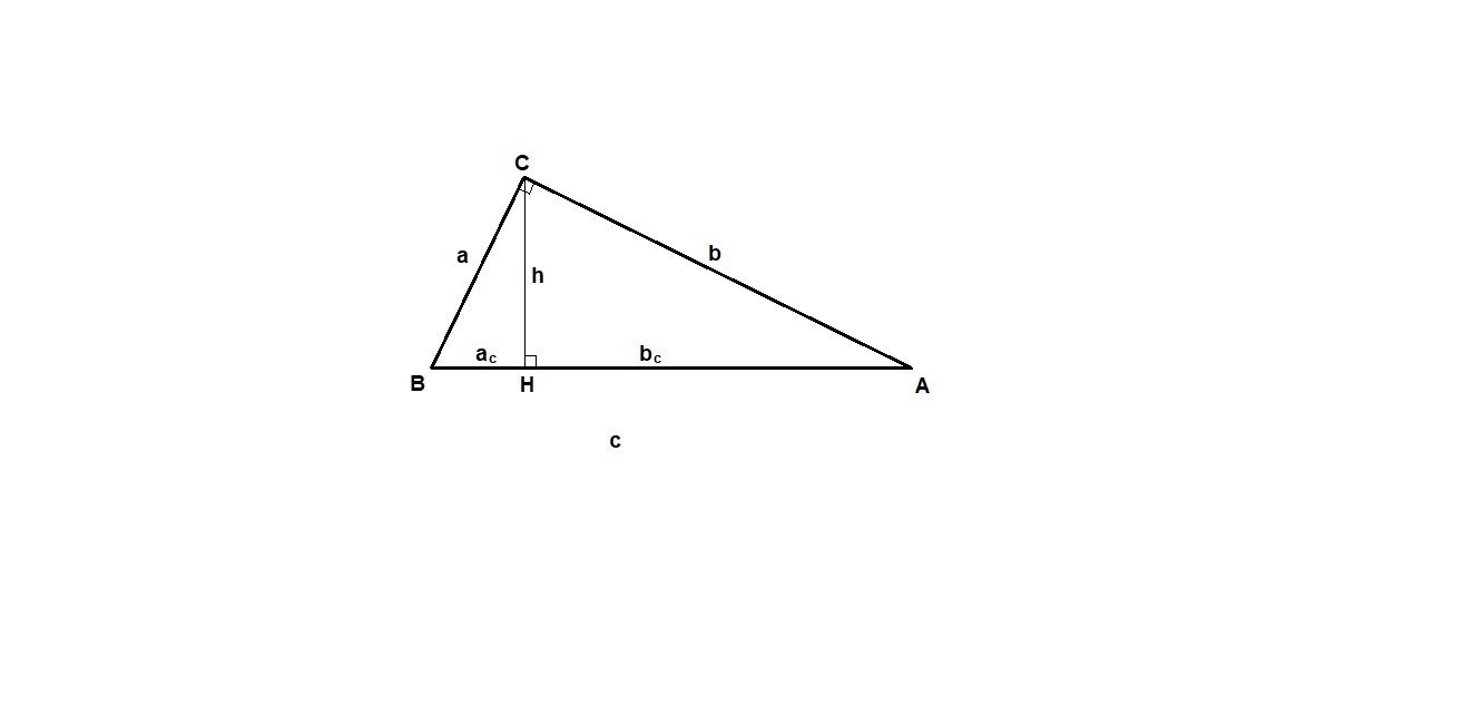 Квадрат высоты, проведенной к гипотенузе, равен произведению проекций катетов на гипотенузу: