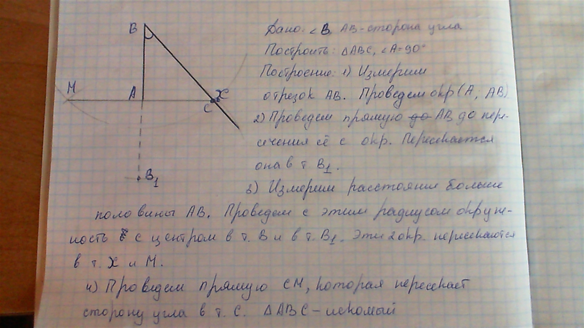 №1 Постойте прямоугольный треугольник по катету и прилежащему к нему острому углу