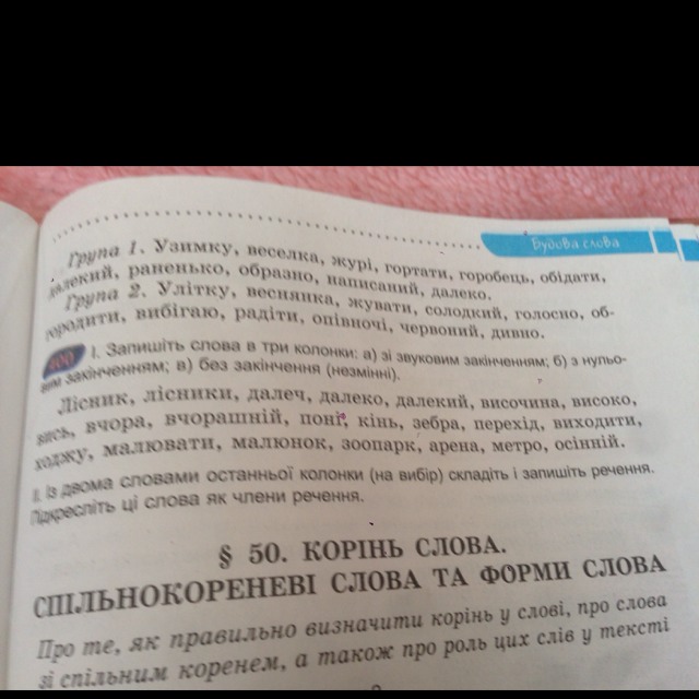 Запишите слова в три колонки: со звуковым окончанием, нулевым окончанием и "незмінні":