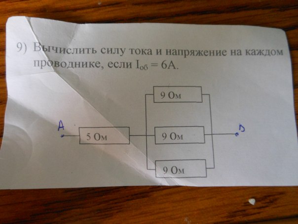 параллельный участок 3 Ом и сопротивление в 5 Ом, соединены между собой последовательно