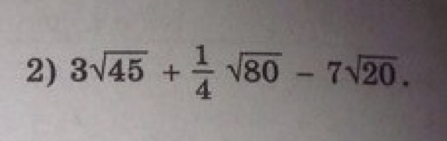 3√45 +1/4√80 -7√20=3√9·5 +1/4√4·5·4 -7√4·5=3·3√5 +1/4·2·2√5 -7·2√5=9√5 +1/4·4√5 -14√5=9√5 +1√5 -14√5=-4√5