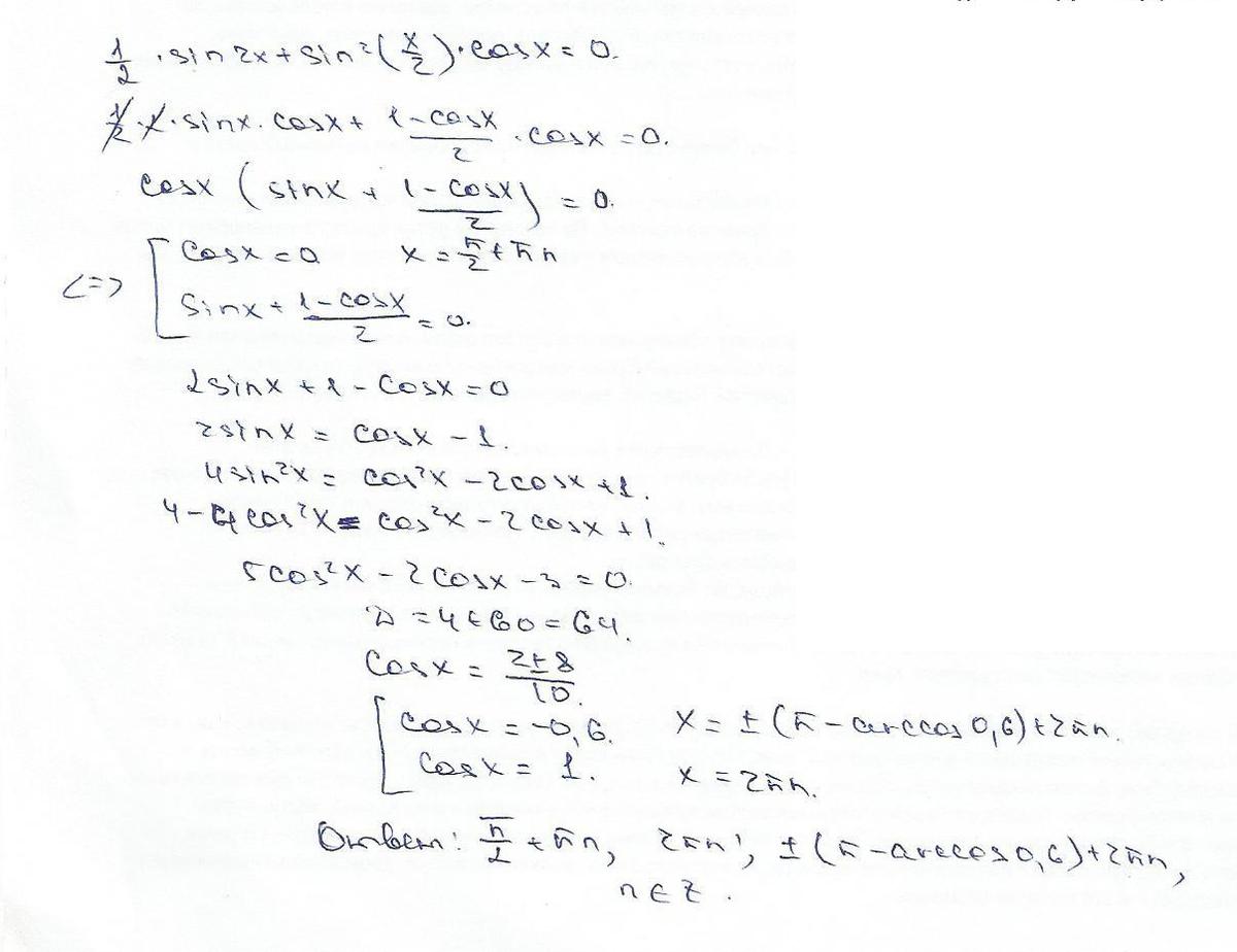 1/2-1/2*cos^2x+(1-cosx)/2*cosx=0