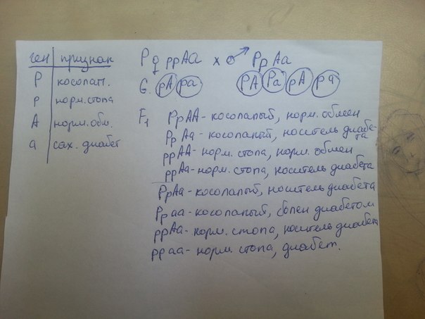 У человека косолапость(Р) доминирует над нормальным строением стопы(Р) а норм. Обмен углеводов над сахарным диабетом.
