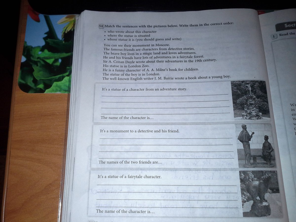 2. The famous friends are characters from detective stories. Sir A. Conan Doyle wrote about their adventures in the 19th century. You can see their monument in Moscow. The names of the two friends are Sherlock Holmes and Dr. Watson.