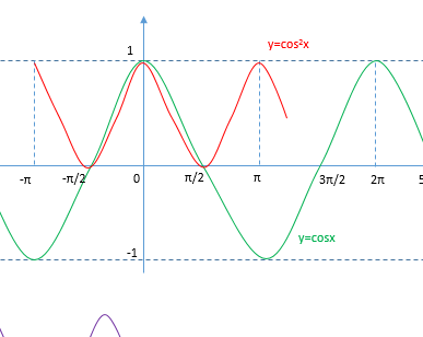 Пусть z=cosx. Тогда данная ф-я предтавится в виде y=z². При z=1 значения z и у совпадают. При других положительных значениях z точки у будут лежать ниже, т.к. z<1. График ф-ии у будет представлять периодически повторяющие кусочки. Построим его. Глядя на него легко определить промежутки монотонности.