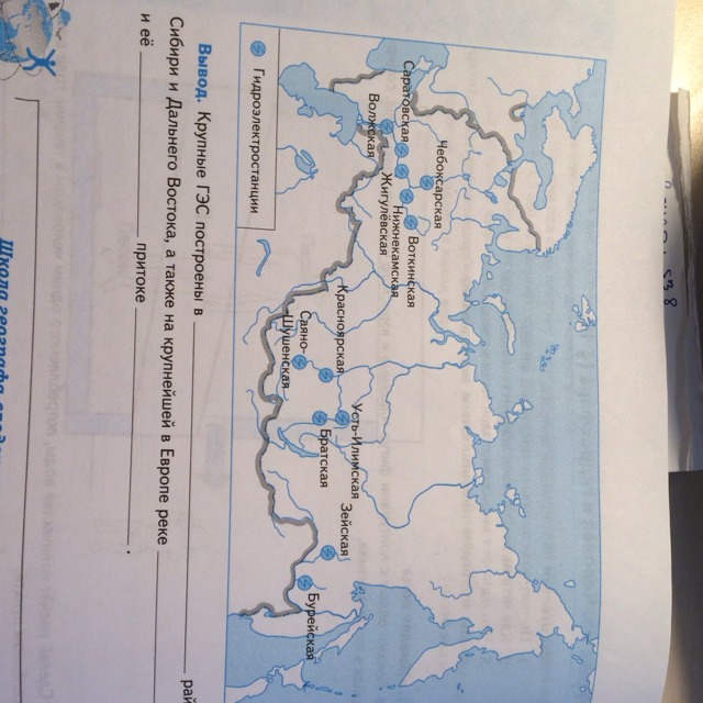 Крупные ГЭС построены в _________ районах Сибири и Дальнего востока, а также на крупнейшей в Европе реке _________ и её ________ притоке _________