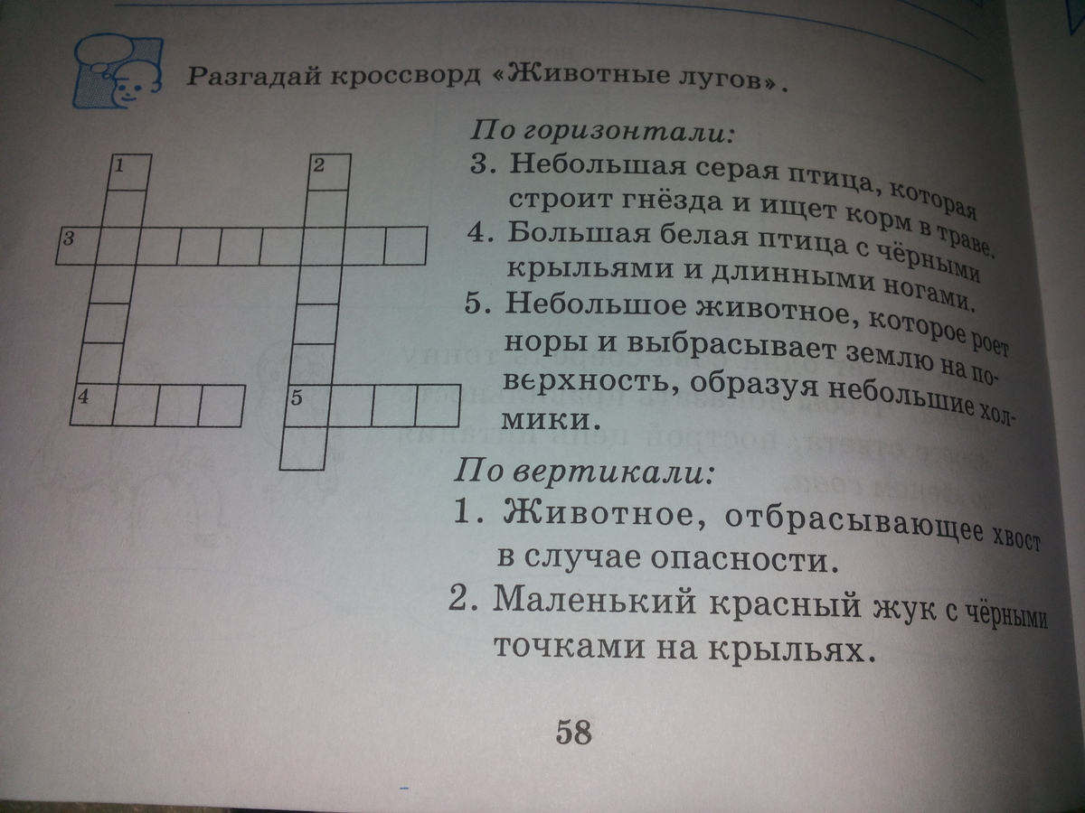 1 ящерица 4 аист 5 крот 2 пожарник 3 перепёлка