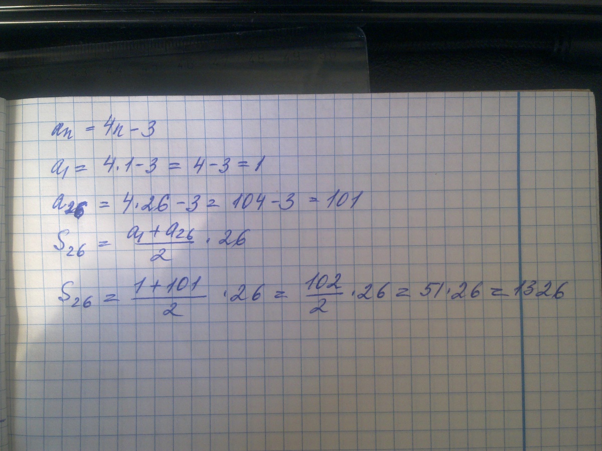 вычислите сумму двадцати шести первых членов арифметической прогрессии заданной формулой an=4n-3