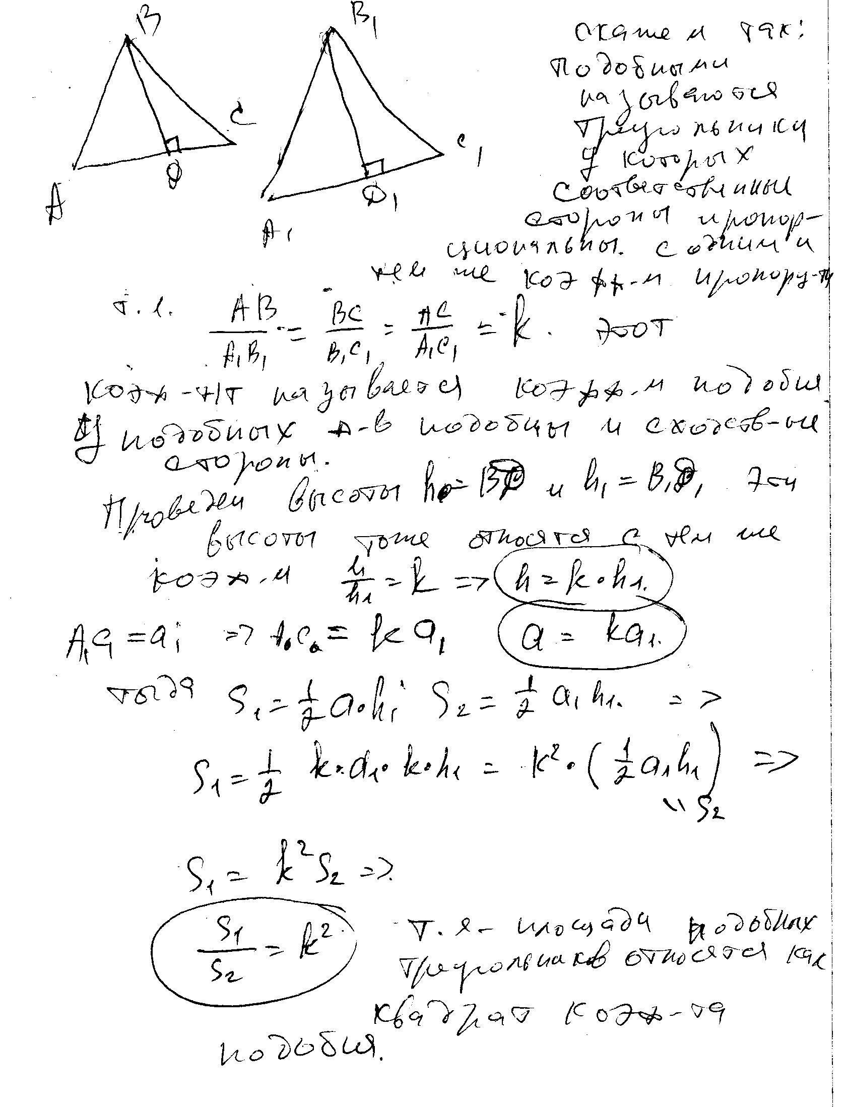 Определение подобных треугольников,вывод теоремы об отношении площадей подобных треугольников.