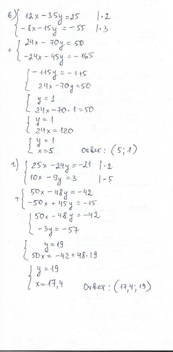 Помогите, пожалуйста! Нужно решить системы уравнений под буквами в,г. Способом сложения.