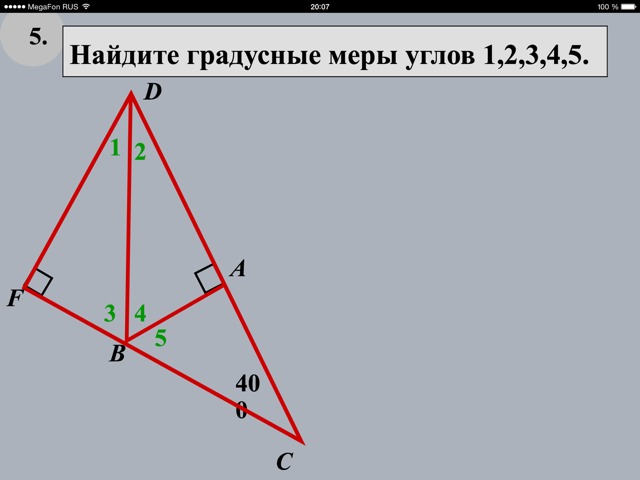 угол 3=углу 4=углу 5=30 градусов, т.к против угла 30 градусов лежит катет равный половине гипотенузы
