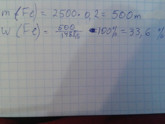 Определите массовую долю железа в чугуне массой 1488,5 т, который выплавлен из красного железняка массой 2500 т с массовой долей пустой породы 20 %.