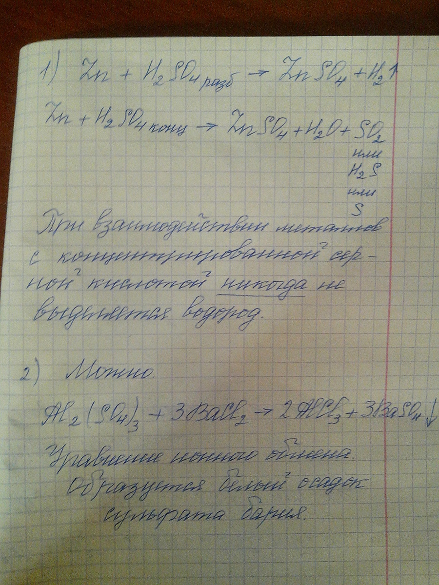 1)докажите, что влияние разбавленной и концентрированной серной кислоты на цинк неодинаковые.Запишите уравнения реакций, происшедших в ходе опыта.