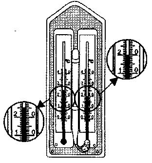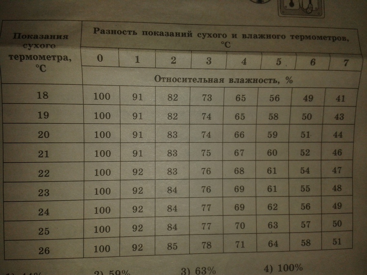 на рисунке изображен психрометр прибор для измерения температуры и влажности воздуха .используя показания термометров и фрагмент психометрической таблицы определите относительную влажность воздуха с решением
