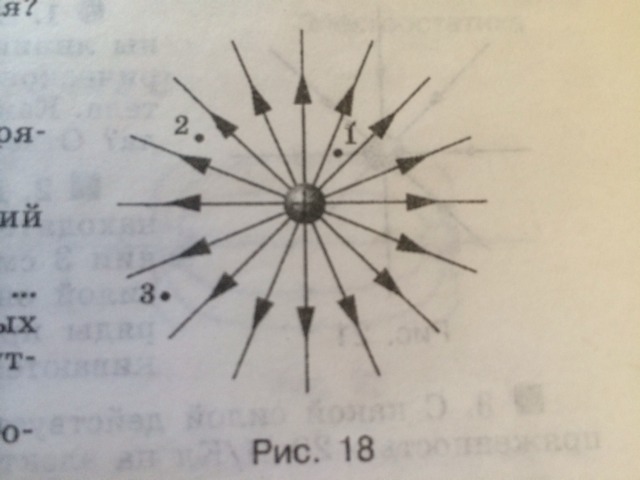 те чем дальше от заряда, тем поле слабее, на рисунке это точка 3
