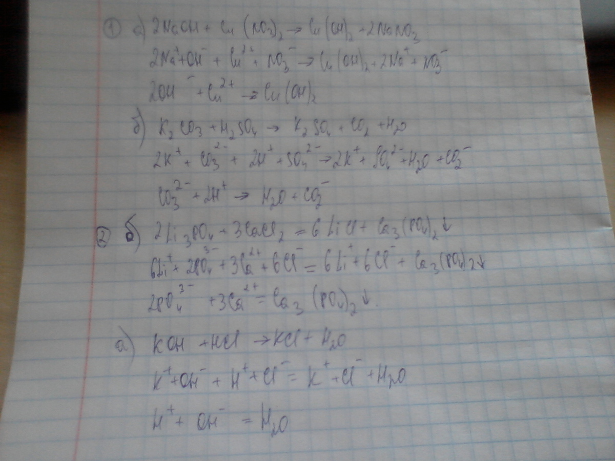 1 а) 2NaOH+Cu(NO3)2= 2NaNO3 + Cu(OH)2 осадок