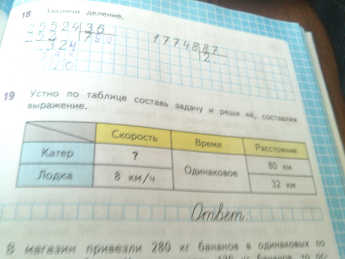 2) 80 : 4 = 20 км/ч скорость катера