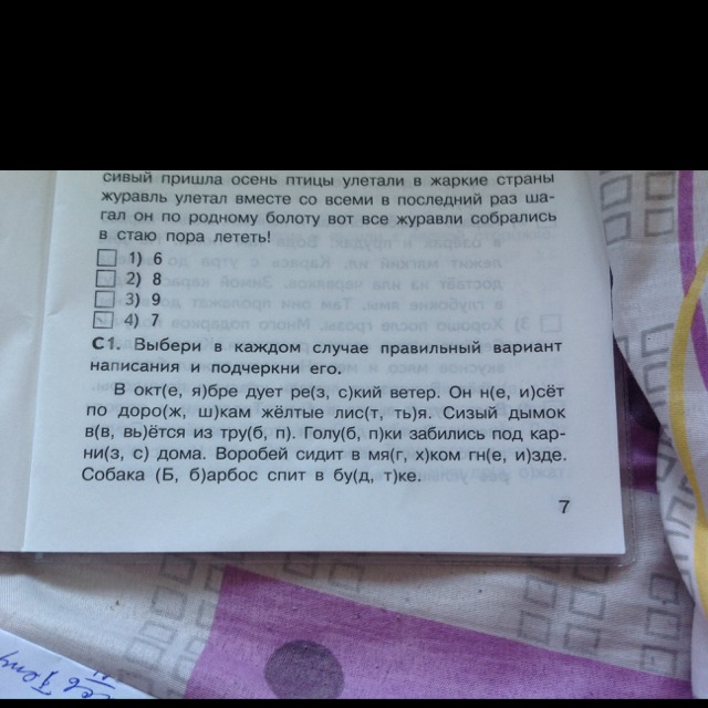 В октябре дует резкий ветер. Он несет по дорожкам желтые листья. Сизый досок вьется из труб. Голубки забились под карниз дома. Воробей сидит в мягком гнезде. Собака Барбос спит в будке.