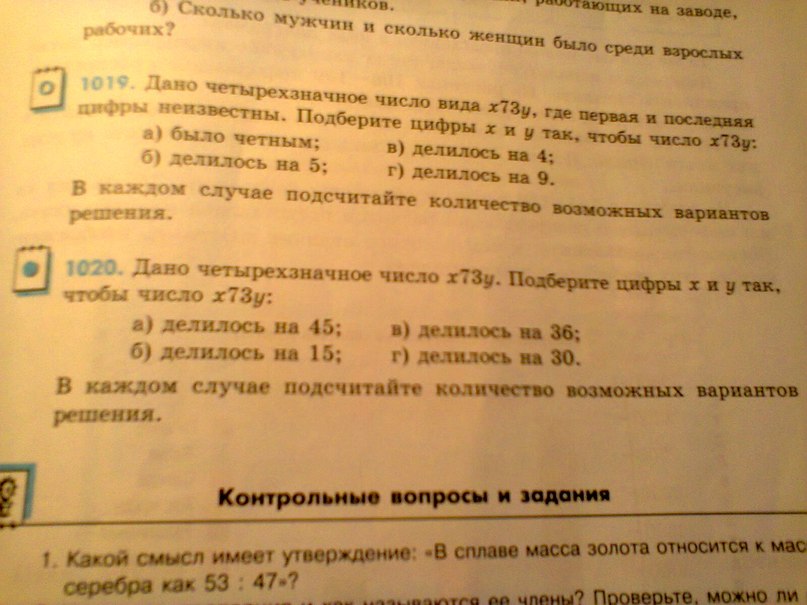 Чтобы число разделить на 15,надо чтоб можно было: 1) разделить его на 5 и на 3,если в конце числа будет 0 или 5 и 2) если сумма всех цифр разделится на 3.Сначала заменим у на 0,или на 5,а после будем подбирать х так,чтобыв сумма делилась на 3.