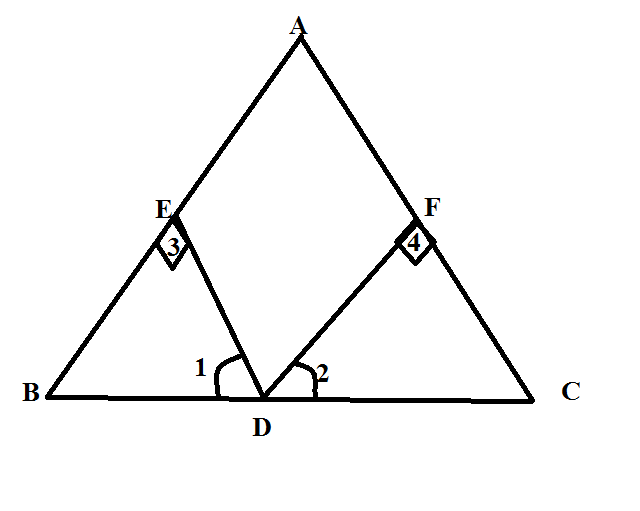 На рисунке угол 1=2 , угол 3=4=90 гр, BD=DC. Докажите , сто треугольник ABC равнобедреный