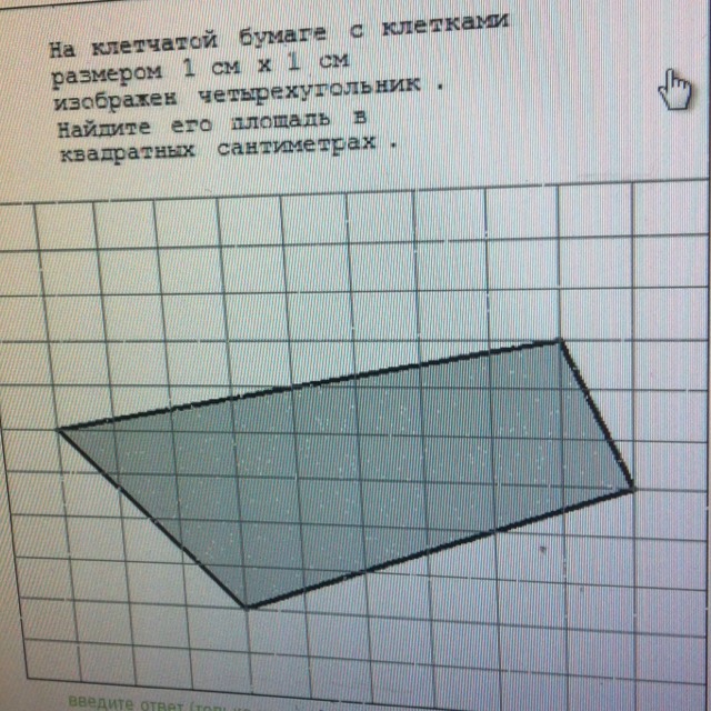 На клетчатой бумаге с клетками размером 1см х 1см изображен четырехугольник. Найдите его площадь в квадратных сантиметрах.