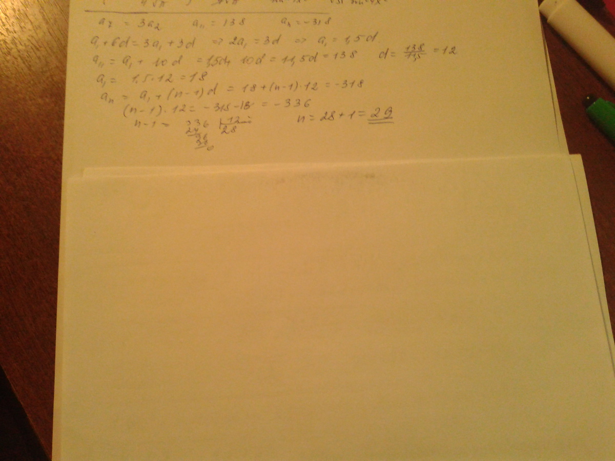 в арифметической прогрессии седьмой член в три раза больше второго, а одиннадцатый член равен 138. найти номер члена , равного -318