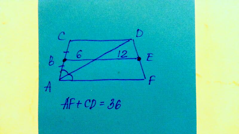 В равнобокой трапеции диагональ является биссектрисой острого угла и делит среднюю линию трапеции на отрезки длиной 6 и 12. Найдите периметр трапеции.