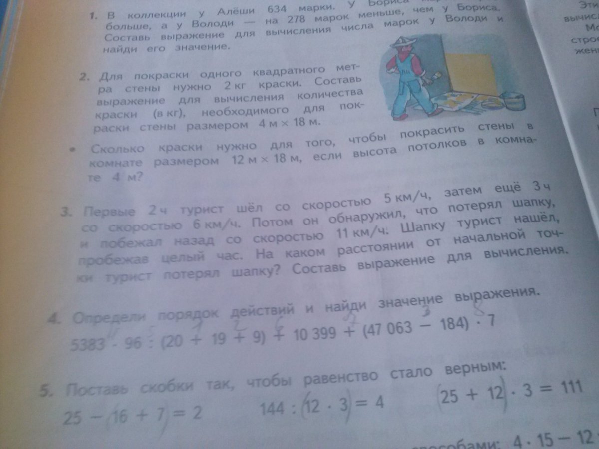 Сначала путь который прошел турист:2*5=10 и 3*6=18,теперь вычитаем растояние на которое он вернулся:10+18-11=17(км)ответ,выражение вот: