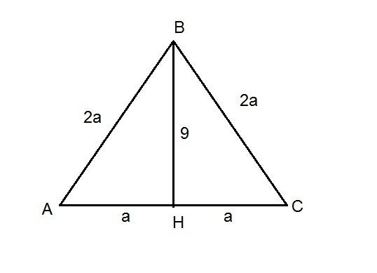 Пусть АС=2а см, тогда АН=1/2×АС=1/2×2а=а см.