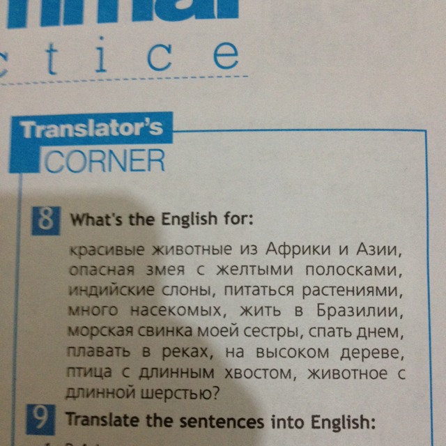 beautiful animals from africa and asia;dangerous snake with yellow strapps;indian elephants;eat plants;a lot of insects;live in brazillia;guinea pig my sister;sleep during the day;swim in rivers;on high tree;bird with a long tail;animal with long hair