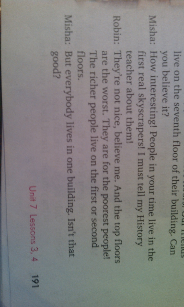 робин:они не хороши поверь мне.На высших этажах наихудшие. они для бедных людей.Богатые люди живут на первых или вторых этажах.
