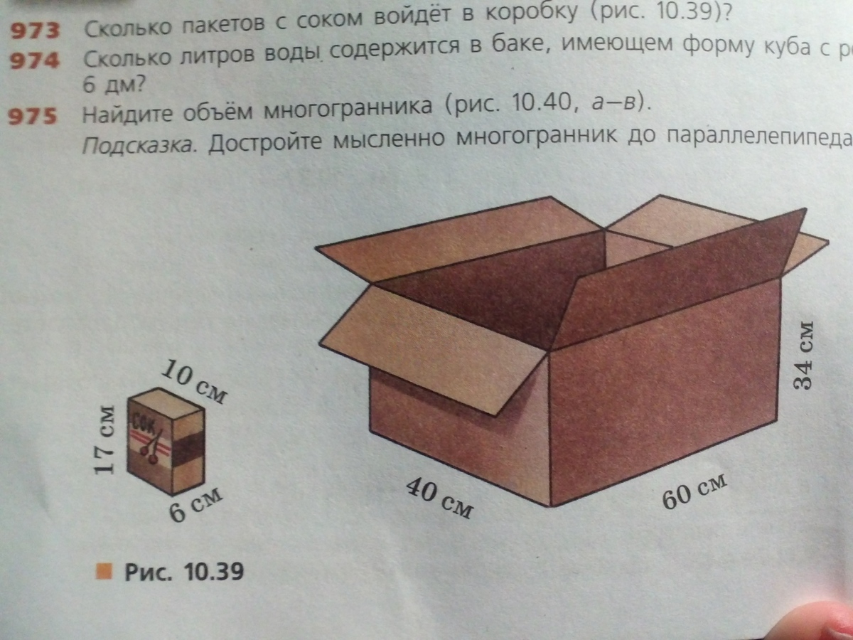 2) 40:10 = 4 пакета - войдет в ширину коробки